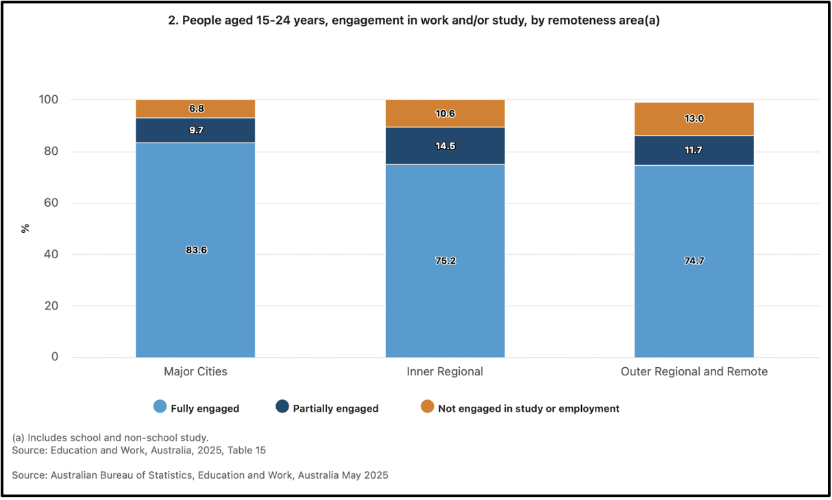 ABS Education and Work, Australia 2025 data shows strong formal engagement among 15–24-year-olds: