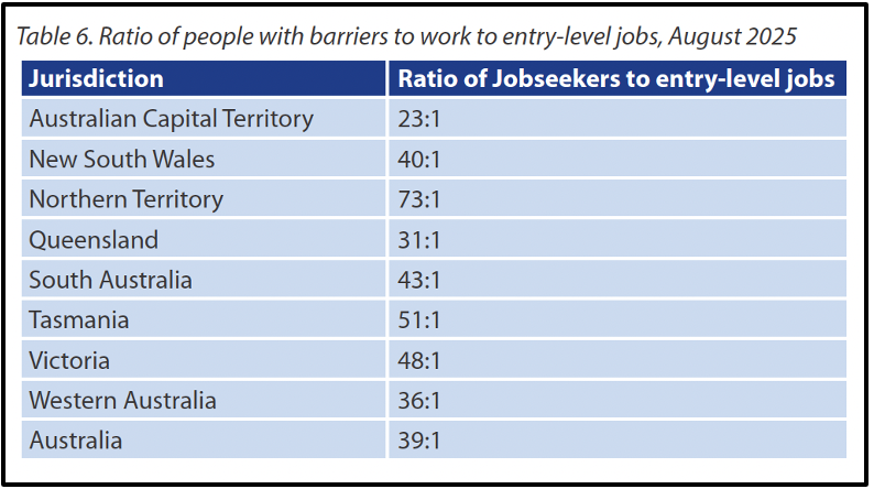 Australia has more than half a million people with barriers to work and less than 25,000 entry level jobs available to them.